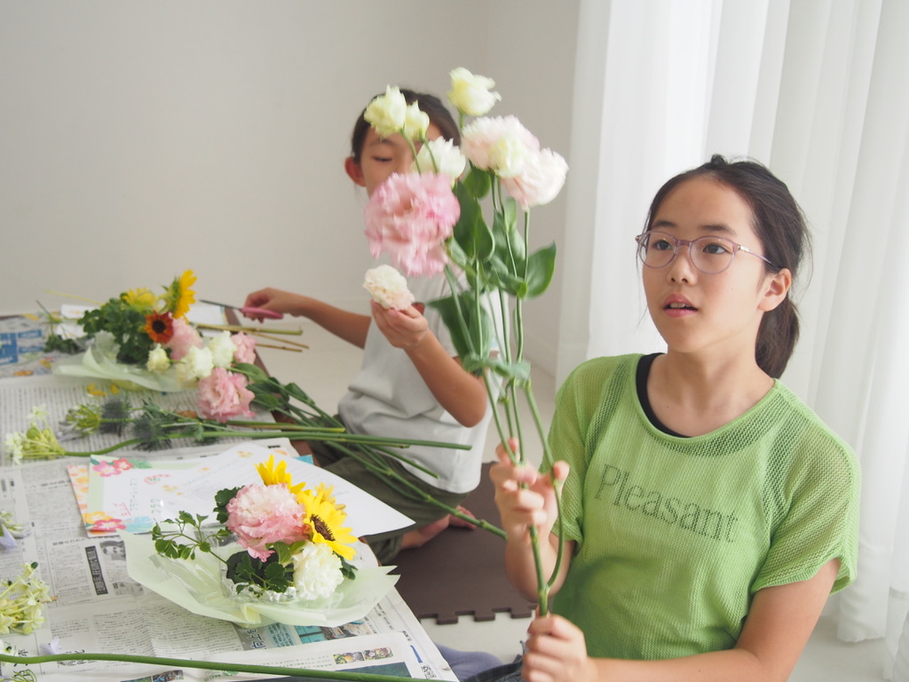 花とのふれあいを通じて創作に集中、お子様のアイディアを大切にします。